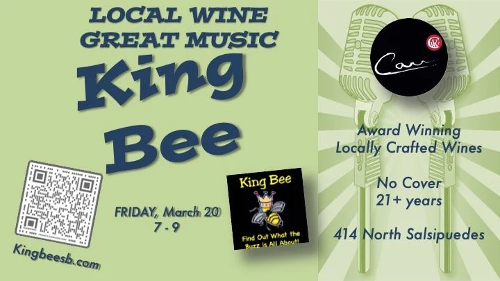Whatcha up to this Friday, March 20? King Bee will be returning for another truly fun night at Carr Winery in Santa Barbara's "off-downtown" location. Last time we played there is was a full-on dance fest. Fabulous locally made wine, chill vibe and just a great hang. Join us? No cover (and worth every penny).